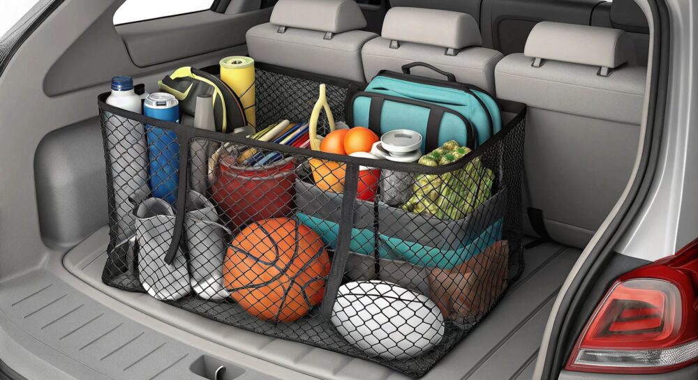 - Сетчатые карманы: Настенные или напольные карманы, которые крепятся к боковым стенкам багажника. Идеальны для хранения мелких предметов, таких как бутылки с жидкостью, инструменты, аптечка.