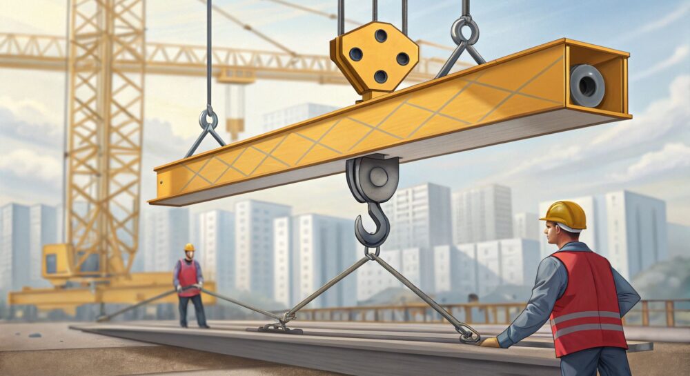 Когда груз подвешивается к концам траверсы, нагрузка распределяется равномерно между точками крепления. Центральная проушина, будучи точкой подвеса к крану, воспринимает общую нагрузку. Это позволяет избежать чрезмерного натяжения строп в отдельных точках и снизить риск деформации или повреждения груза.