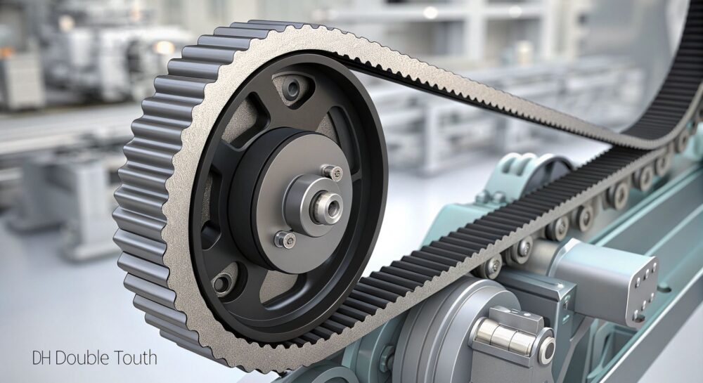 Ремни с двойным зубом (D-HTD) представляют собой тип ремня, используемого в механизмах передачи мощности. Их конструкция включает в себя двойной зуб, что позволяет им обеспечивать более точную и эффективную передачу мощности по сравнению с традиционными ремнями. Это достигается за счет уникальной геометрии зубьев, которая обеспечивает более плотное зацепление с шкивами, снижая проскальзывание и повышая общую эффективность системы.