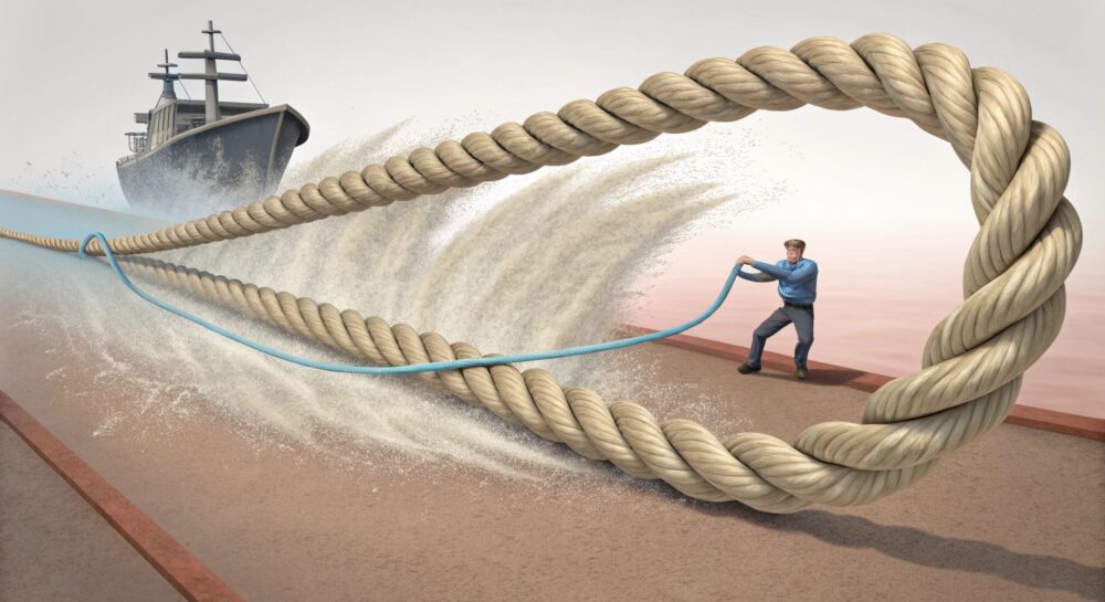 При рывке, буксирующий объект передает часть своей кинетической энергии тросу. Трос растягивается, накапливая потенциальную энергию. Затем, когда трос начинает сжиматься, он отдает эту энергию, толкая буксируемый объект.