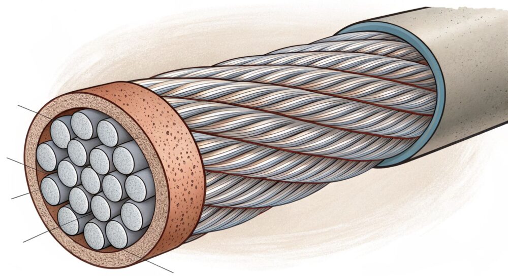 • Пологий угол свивки: Способствует высокой прочности и сопротивлению кручению.