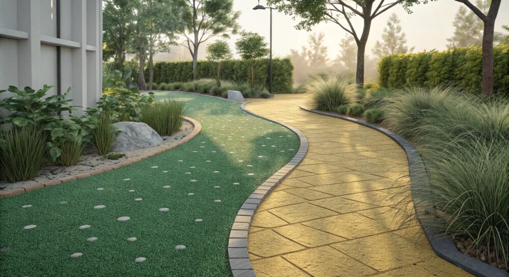 Резиновая крошка против песка: что выбрать для дорожек и отмосток?